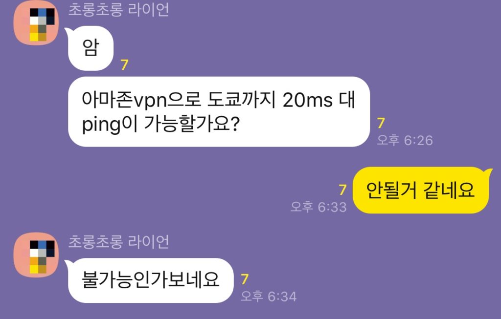 한국과 도쿄리전 간의 레이턴시를 20ms 로 줄일수 있는지가 관건이었다.