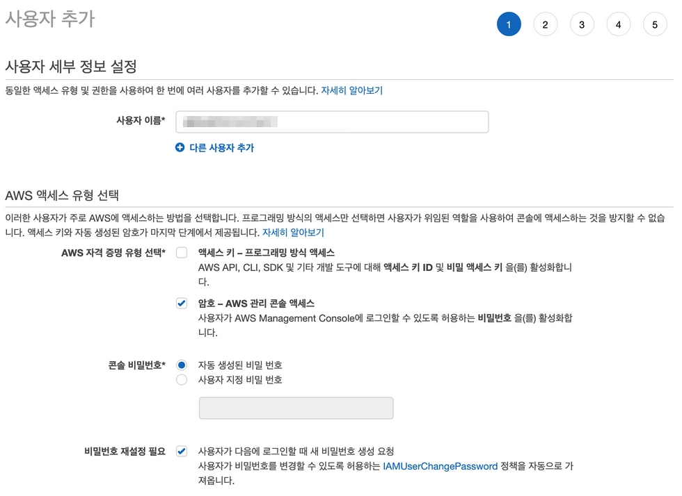 액세스키 방식이 아닌 AWS 관리 콘솔 액세스를 선택한다.