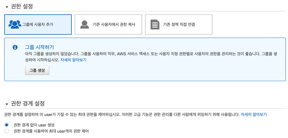먼저 로그인 통로가 될 User를 생성한다. IAM에서 사용자를 추가하면 된다.