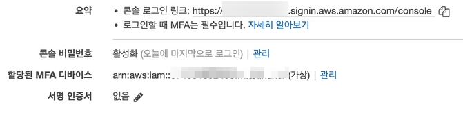 이상태가 되면된다. 이제 요약에서 보여주는 콘솔링크로 AWS를 이용한다. 한번 로그인해보시라.