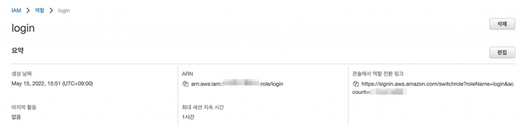 그럼이제 이 역할을 사용하는 방법은 바로전에 생성한 계정으로 로그인하고, 생성한 역할의 요약 탭에서 보여주는 역할전환 링크를 통해 역할을 전환한다.