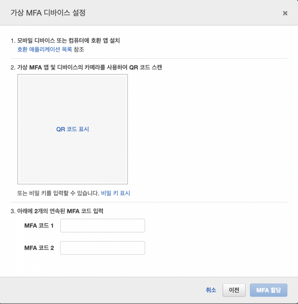 MFA를 생성하기 전에 먼저 물어볼것이 있다. 혹시 메일주소가 다른 계정이나, 패스워드가 겹치진 않는가? 이건 굉장히 중요한 문제다. 계정이 다른 아이디 나 패스워드가 겹친다면 삭제하고 처음부터 다시 만들자. 자주사용하는 아이디와 패스워드는 유출될 확률이 높다. 물론 MFA를 사용하면 안전하다. 하지만 언제나 방심하는 순간 문제가 발생한다. 그러니, 콘솔용 메일주소는 별도로 사용하는것이 좋다.