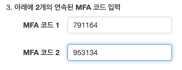 연속된 MFA를 입력하라는건 6자리를 두번 입력해야한다.