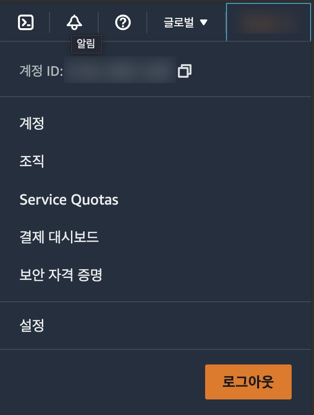 이렇게 나와야한다. 계정을 생성 완료 했다면 계정의 요약에서 보안 자격 증명을 눌러보자.