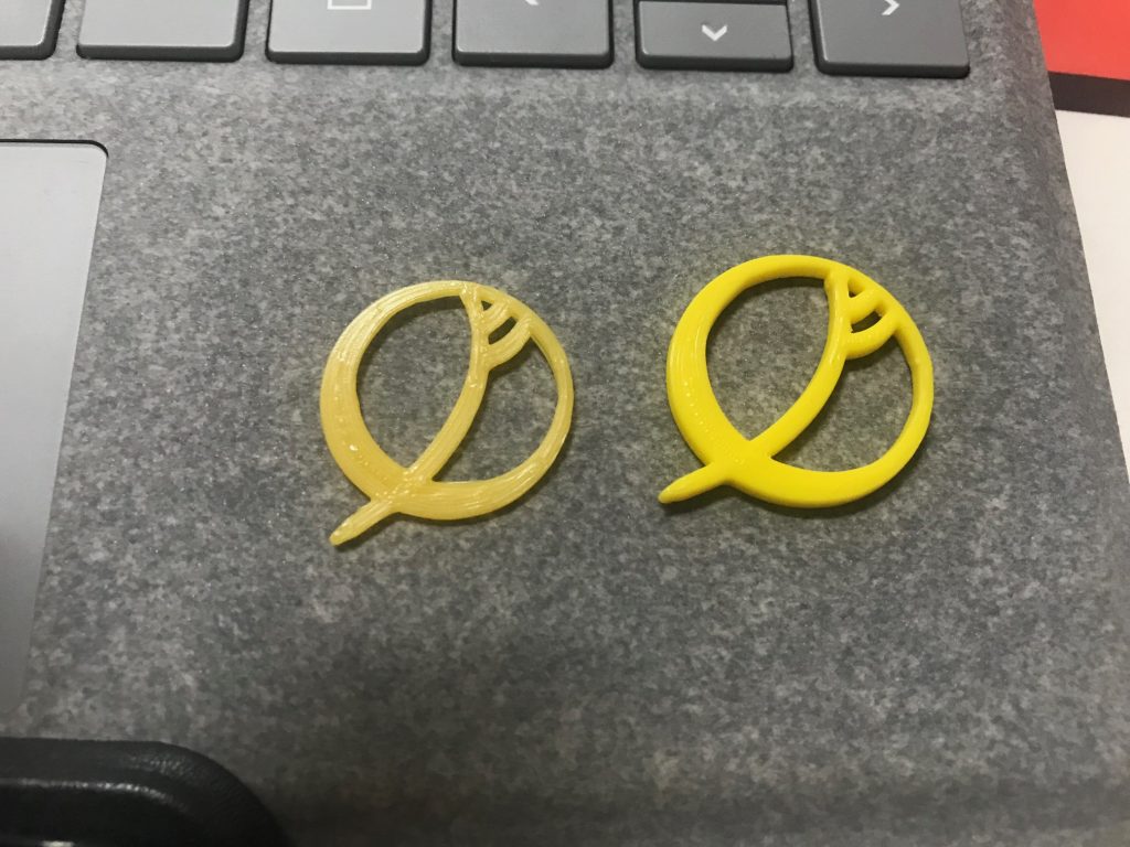 사이즈가 좀 작았다. 2cm 에 높이 1.3 얇게 테스트를 해봤는데 생각보다 깔끔하게 나오긴 했으나.. 원한 느낌은 아니었다. 출력시간 6분