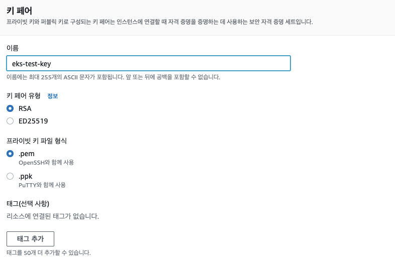 키페어를 생성하는 중에 추가된게 보였다 pem 말고 이젠 ppk 방식의 키도 제공한다.. 이전까지는 puttygen으로 제너레이터 하던부분이 개선된거 같다. 개꿀팁…와…