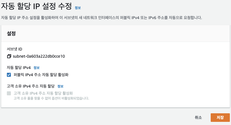 으아니.....서브넷에서 Public IP를 자동으로 붙이도록 해야한다니ㅠㅠ AWS양반 이게 무슨말이요....