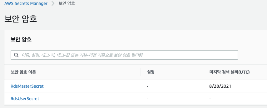 Secrets Manager 도 생성했다.