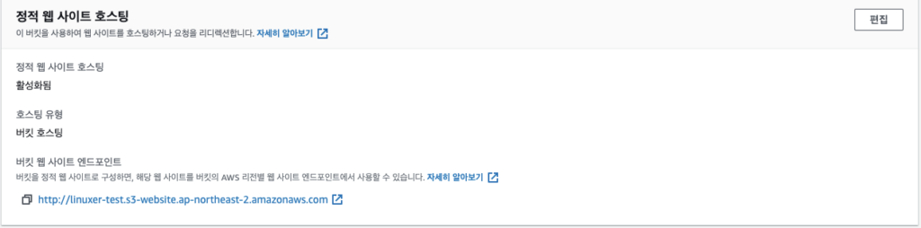 이후에 빌드한 것을 s3 로 정적호스팅 설정하고,