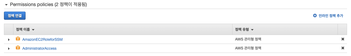 bastion-host를 셋팅후 bastion-host에 이미 ssm 을 사용하기 위해 추가했던 역할에 실습에 사용하기위한 권한을 을 부여했다.