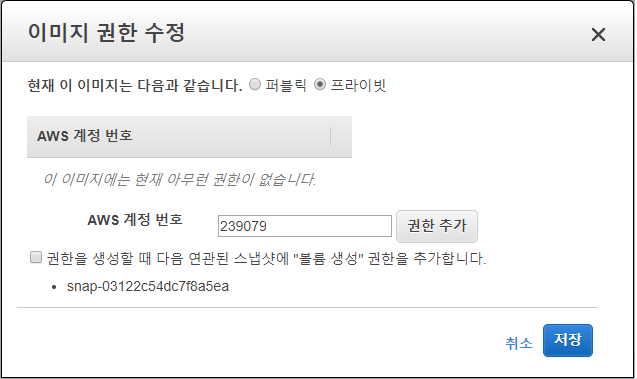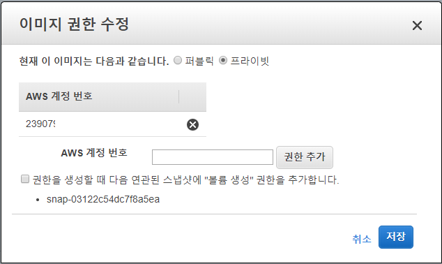공유할 계정의 aws 계정 번호를 입력하여 권한을 추가한다.