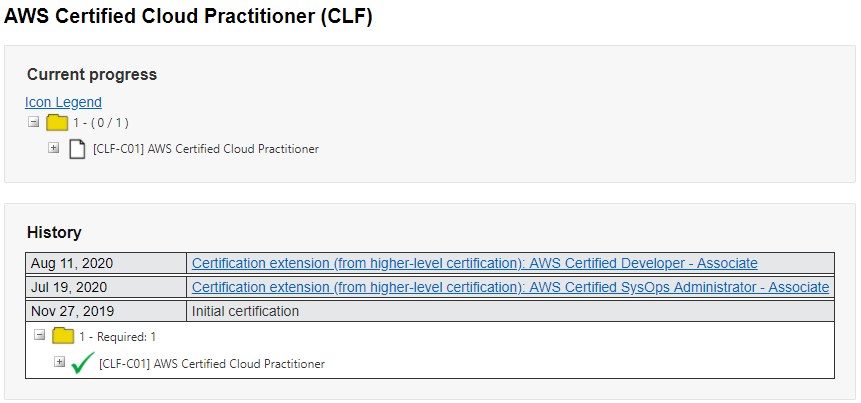 CLF를 취득후에 Associate를 취득하면 같이 갱신된다. 그래서 지금 Practitioner 의 만료일자는