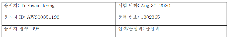 연습시험에서 낮은 점수를 기록했다해도, 본시험은 그보다 난이도가 낮은 문제가 많이 나오니 너무 걱정말자. 그렇지만.. 걱정 안했다가 내가 8월30일 불합격을 맛봤다.