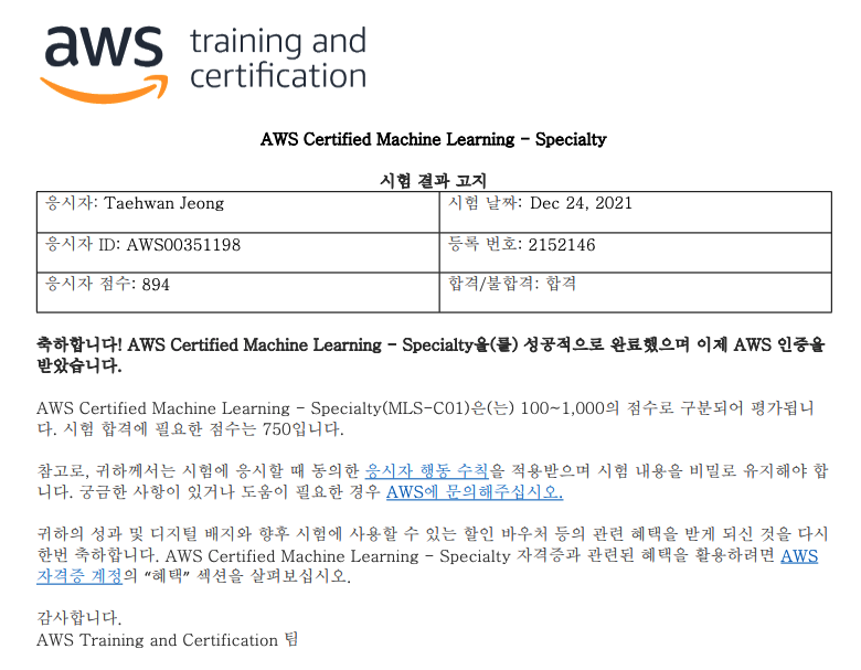 이로서 AWS의 10번째 자격증을 획득하였습니다.