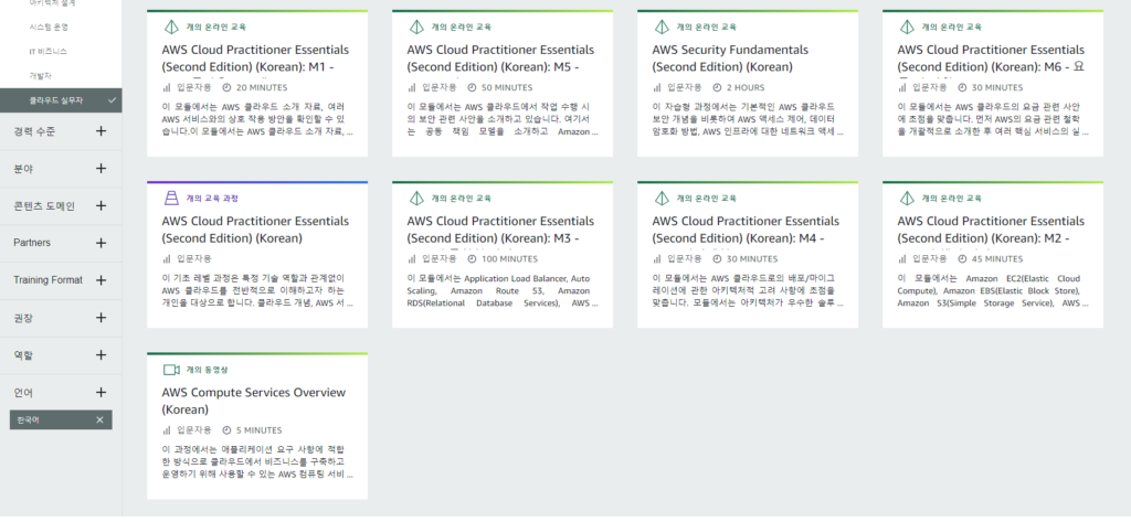 AWS 의 기초학습은 먼저 AWS training ang certification 에서 진행한다.