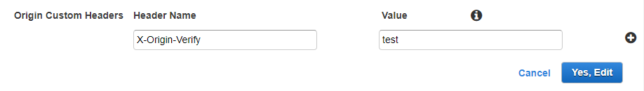 X-Origin-Verify 헤더 네임을 추가하고 Value 로 test를 추가한다.