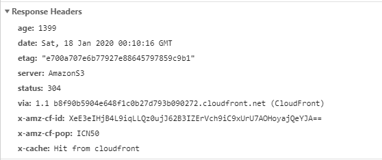 간단하게 확인하려면 f12를 눌러서 cloudfront 의 헤더를 확인해 보면 된다.
