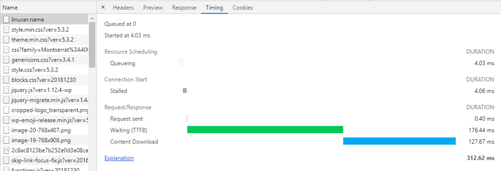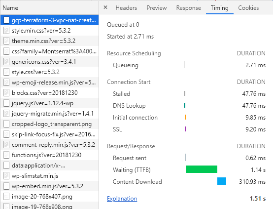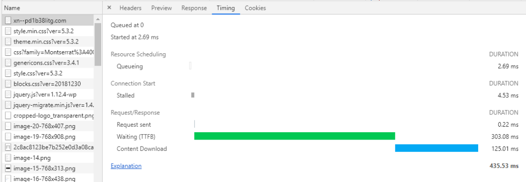 ttfb 가 435.53ms 다. 오잉? 생각보다 속도 차이가 있다.