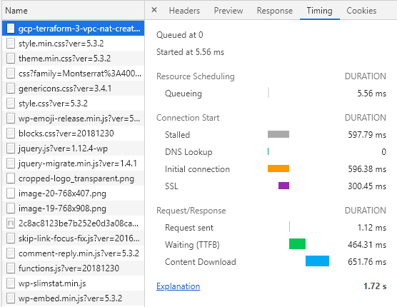 ttfb 가 312.65ms 다 그럼 다이렉트로 로드벨런서에 연결된 도메인은 속도가 얼마나 나올까?