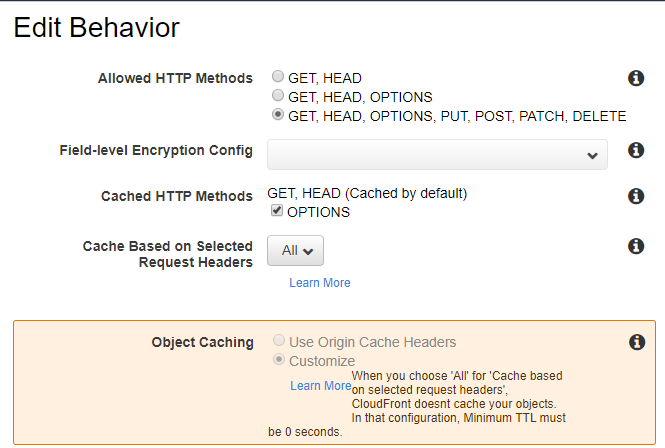 Cache Based on Selected Request Headers -> ALL 로 수정하면 끝이다.