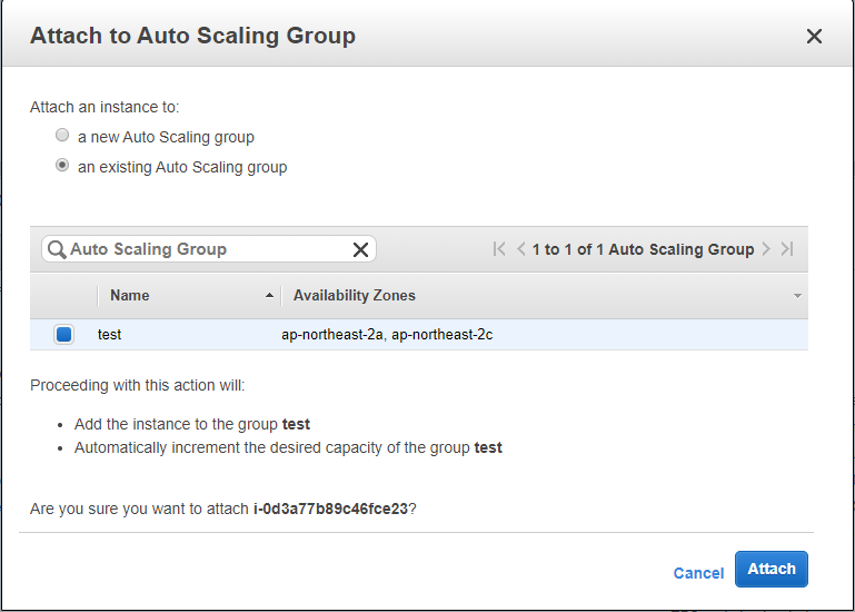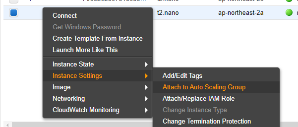 분리된인스턴스에서 인스턴스셋팅을 보면 Attach 메뉴가 있다.