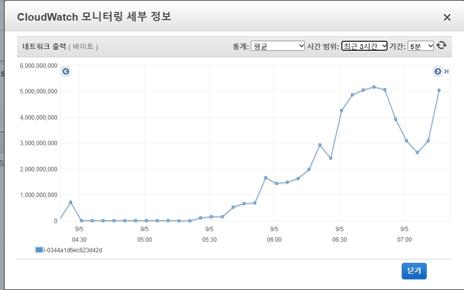 새벽에 먼저 싱크를 진행한 내용이 있는데 network out 이 40mb를 넘지 않았다.