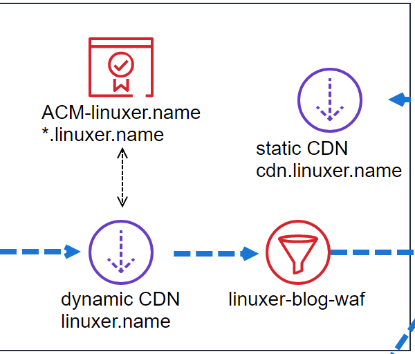 cdn.linuxer.name 도메인은 acm 을이용하는데 버지니아 북부에 acm을 설정해야 한다.
