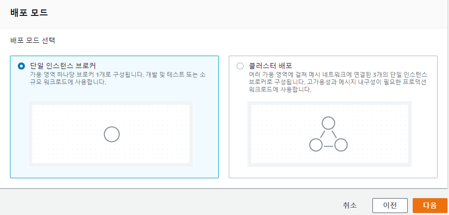 생성모드는 단일과 클러스터 두가지가 있다. 단일구성부터 보자
