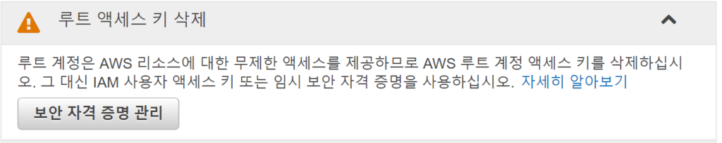 보안자격증명 관리로 이동해서 진행한다. 과정은 간단하고 쉬우니 URL을 참고하자.
