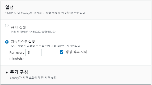 일정은 뭐….알아서 나는 5분으로 만들고 나중에 1분으로 수정했다. 일단 나머지 파라메터를 다 기본으로 설정하고 진행했다.