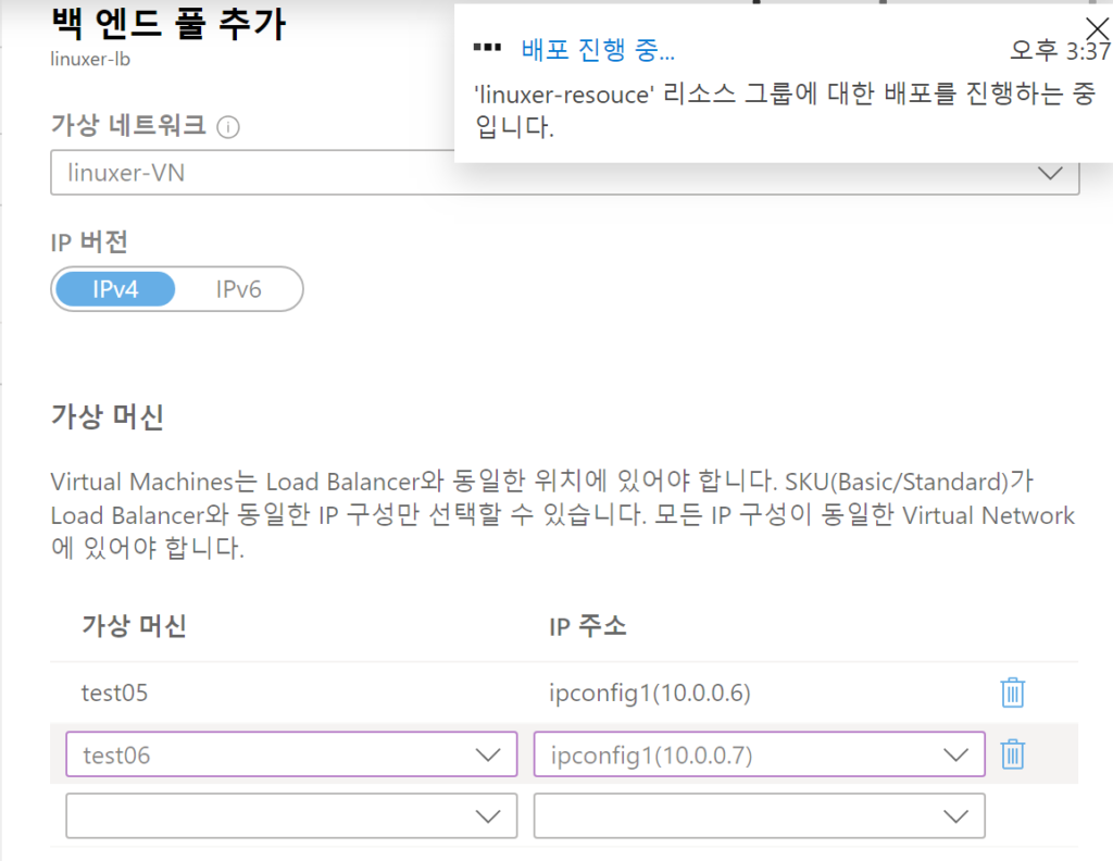 리소스그룹-vpc-subnet-가용성집합-vm-lb 순으로 생성하게 된다.