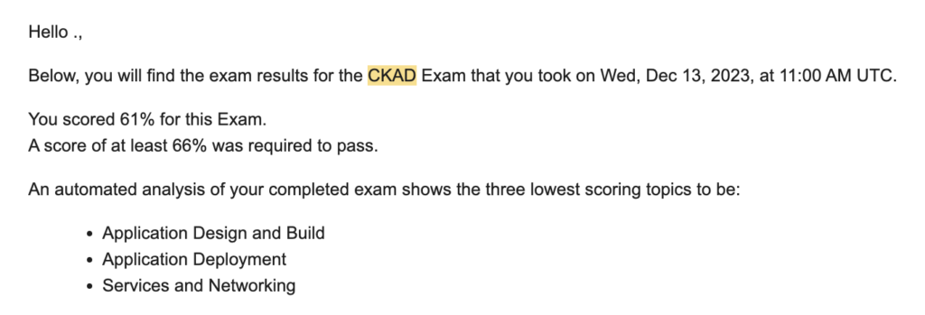 첫번째 시험.. 합격일줄알았는데..떨어졌다.ㅋㅋㅋㅋ 이럴수가ㅋㅋㅋㅋㅋㅋ경악을 금치못했고 공부는 또 안했다. 시험보면서 내가 Docs 에서 원하는 기능이 어디에 있는지 찾는 과정일 뿐 이었기 때문에 그냥 잘 검색하는 방법 yaml 을 좀더 빨리 만들수있게 예제가 있는 위치만 더 찾아봤다.