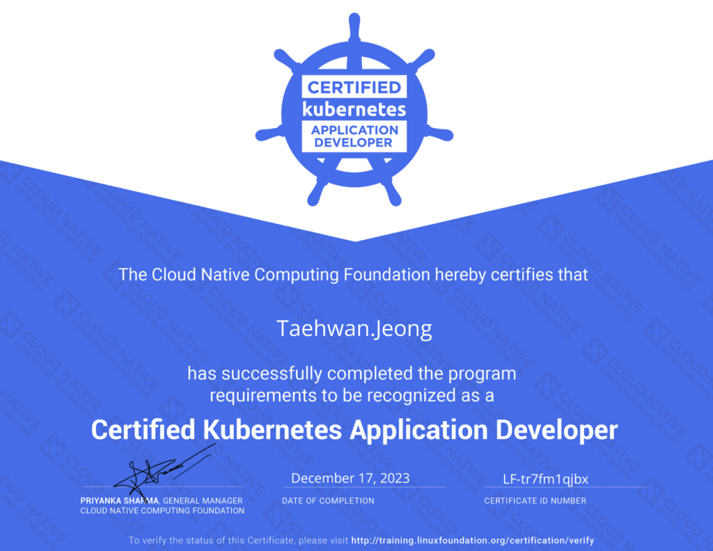 12월 말에 이르러서 CKAD를 취득했다.