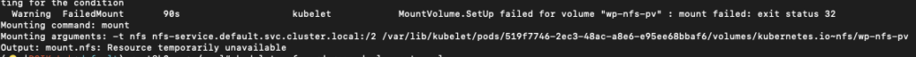 nfs-service.svc.cluster.local domain을 이용하려 하였으나, PV 에서 domain으로 설정시 nfs-provisioner 정상적으로 마운트 되지 않았다.