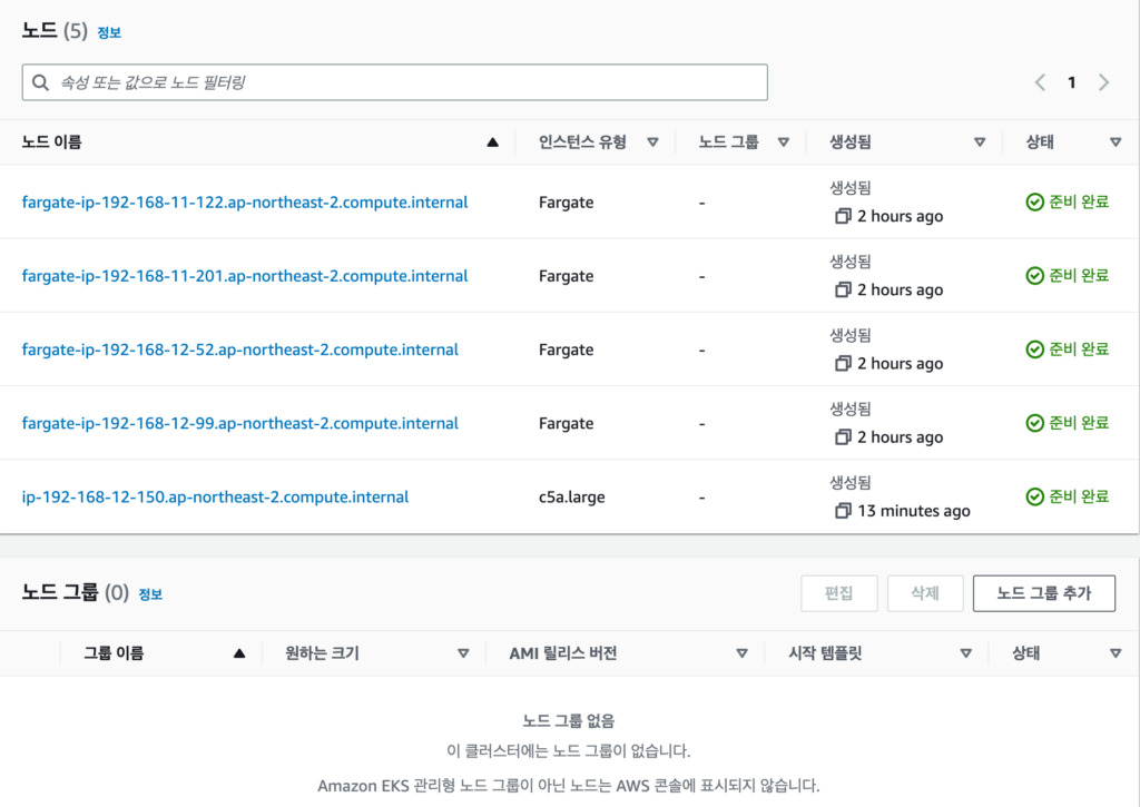 쿠버네티스 컴포넌트 kube-system namespace Pod들은 Fargate에 올린다.