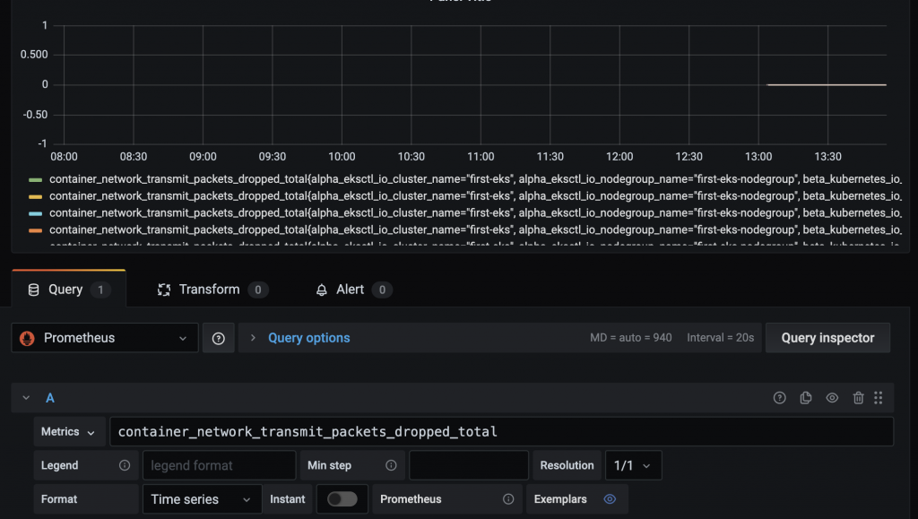 예를 들어서 Dropped packet를 확인하려 한다면 다음 매트릭을 확인할수 있다.