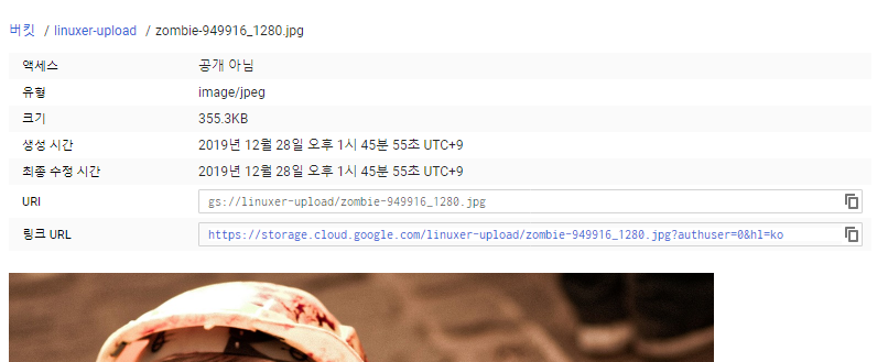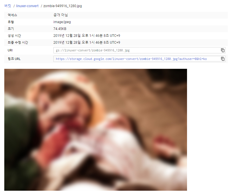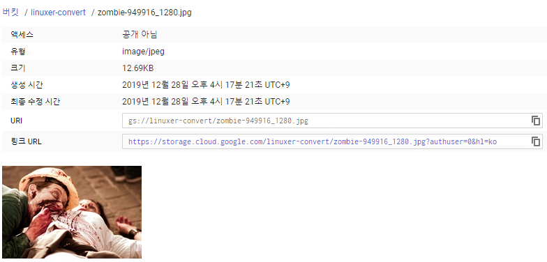 hoceneco@cloudshell:~/nodejs-docs-samples/functions/imagemagick (sage-facet-22972)$ gsutil cp zombie-949916_1280.jpg gs://linuxer-upload Copying file://zombie-949916_1280.jpg [Content-Type=image/jpeg]… [1 files][355.3 KiB/355.3 KiB] Operation completed over 1 objects/355.3 KiB.