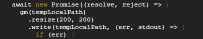 오늘의 미션은 resize이므로 resize를 하기위해선 index.js를 수정해야한다. 오늘의 실습에선 GraphicsMagick for node.js 을 이용해서 테스트를 진행했으므로 아주 수월했다. 원래사용한 blur 부분만 수정하면 될거 같았다.