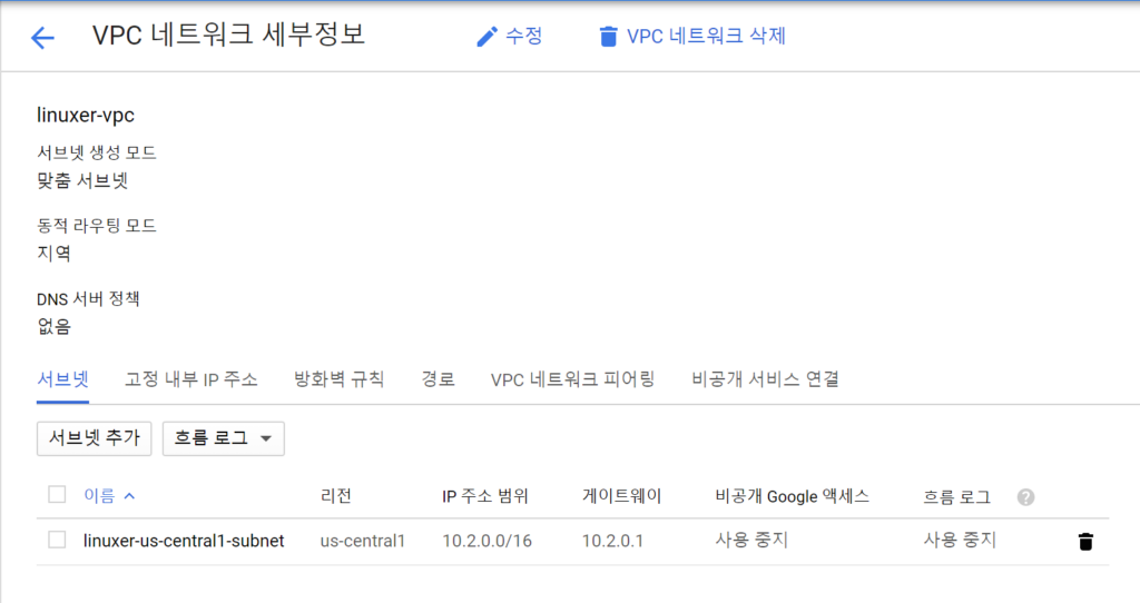 현재 생성한 tf는 subnet 하나에 대한 설정이다. 다른 리전으로도 네임만 수정을 적절히 하면 수정해서 쓸수 있다.