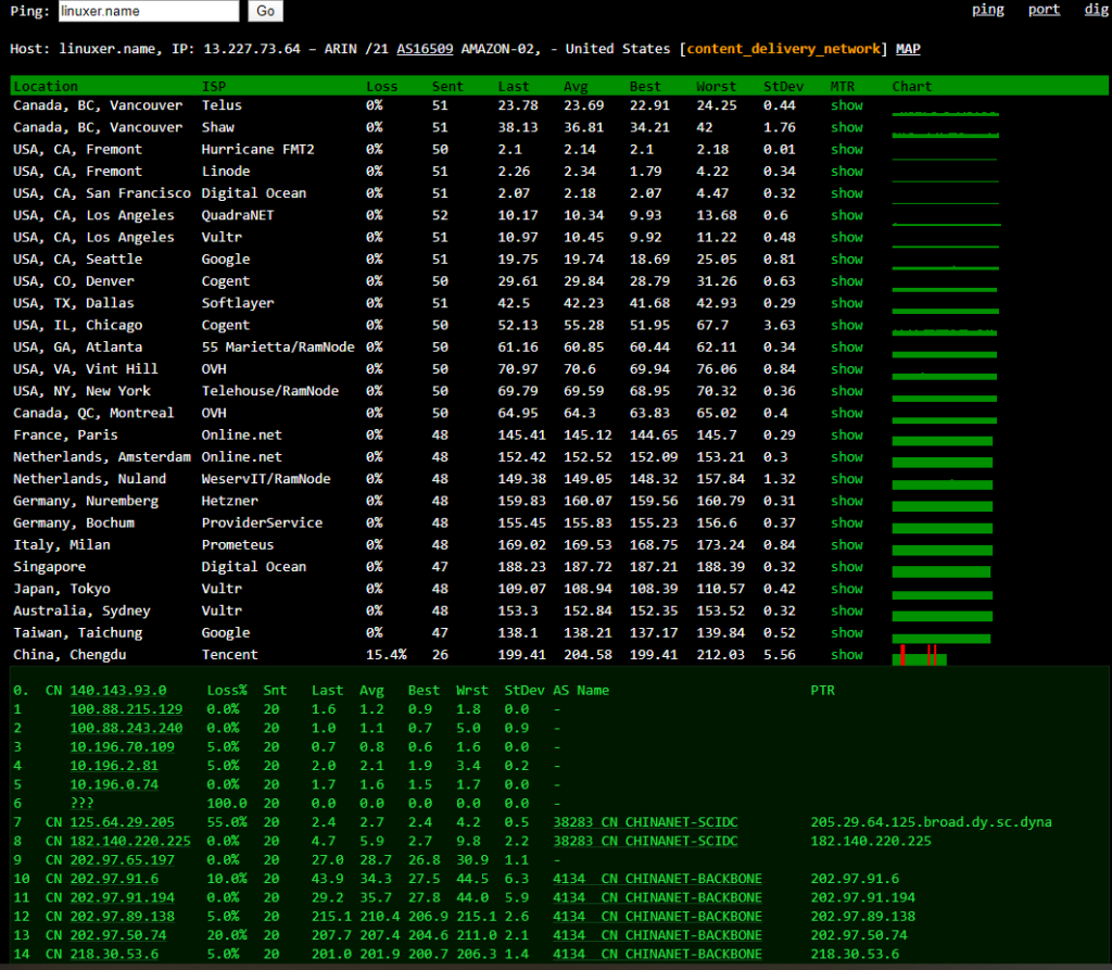 세계 곳곳의 IPS에서 ping test를 해볼수 있는 사이트.