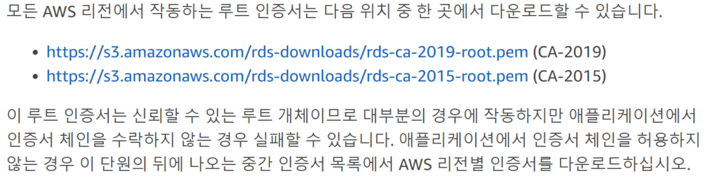 CA-2019 인지라 rds-ca-2015-ap-northeast-2.pem 인증서론 접근이 안된다.