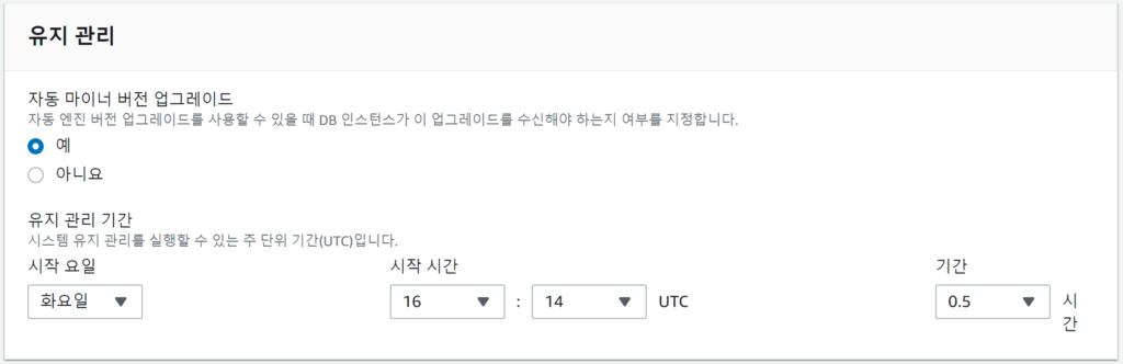 유지관리 기간 설정은 같은 페이지에서 할 수 있다. 즉시 적용을 하지 않을 계획이라면 알아두자. 필자는 즉시적용을 했다.