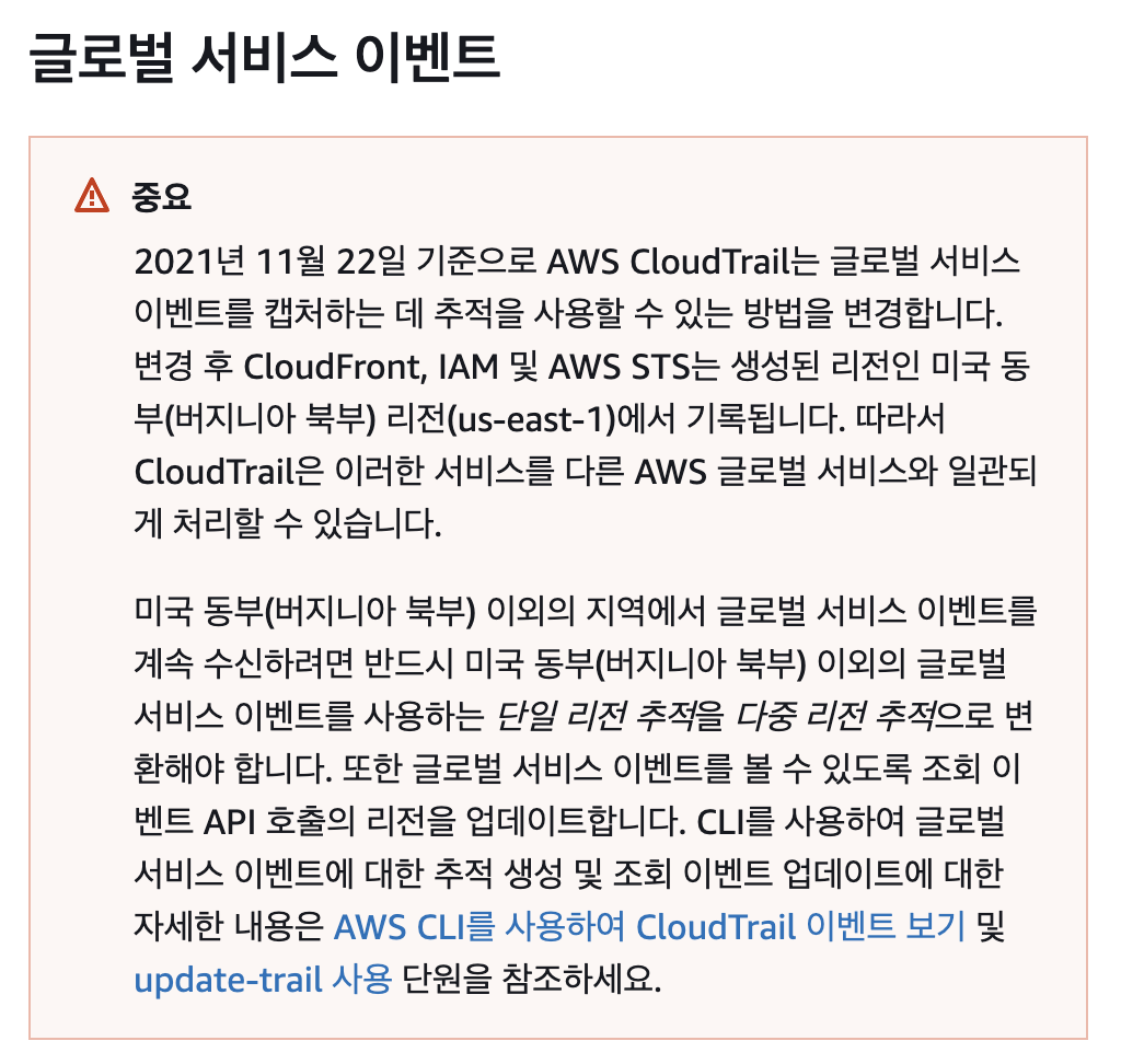 <https://docs.aws.amazon.com/ko_kr/awscloudtrail/latest/userguide/cloudtrail-concepts.html#cloudtrail-concepts-global-service-events>