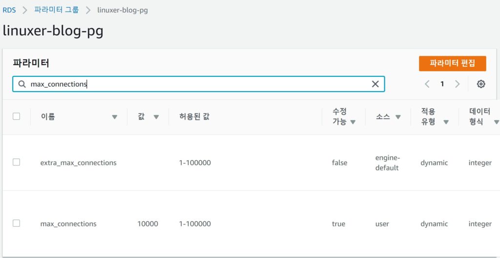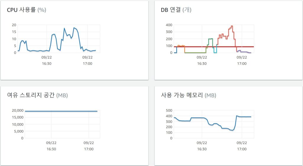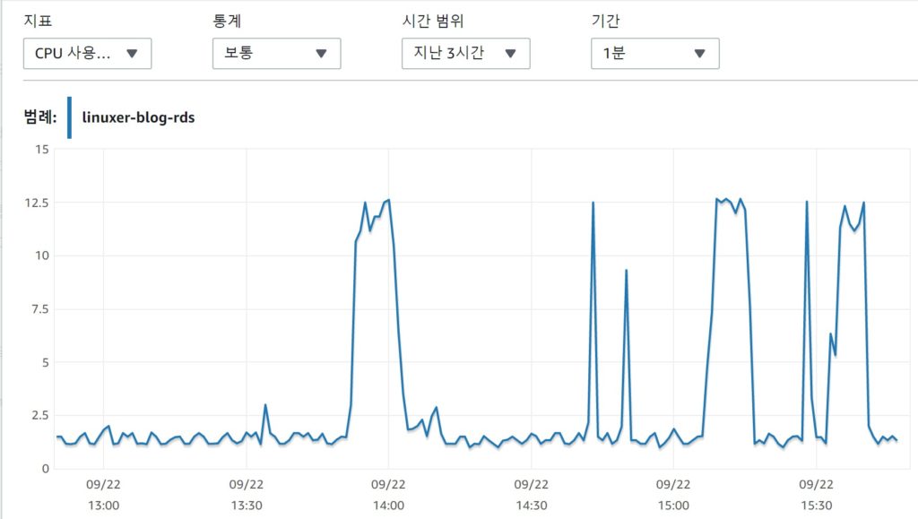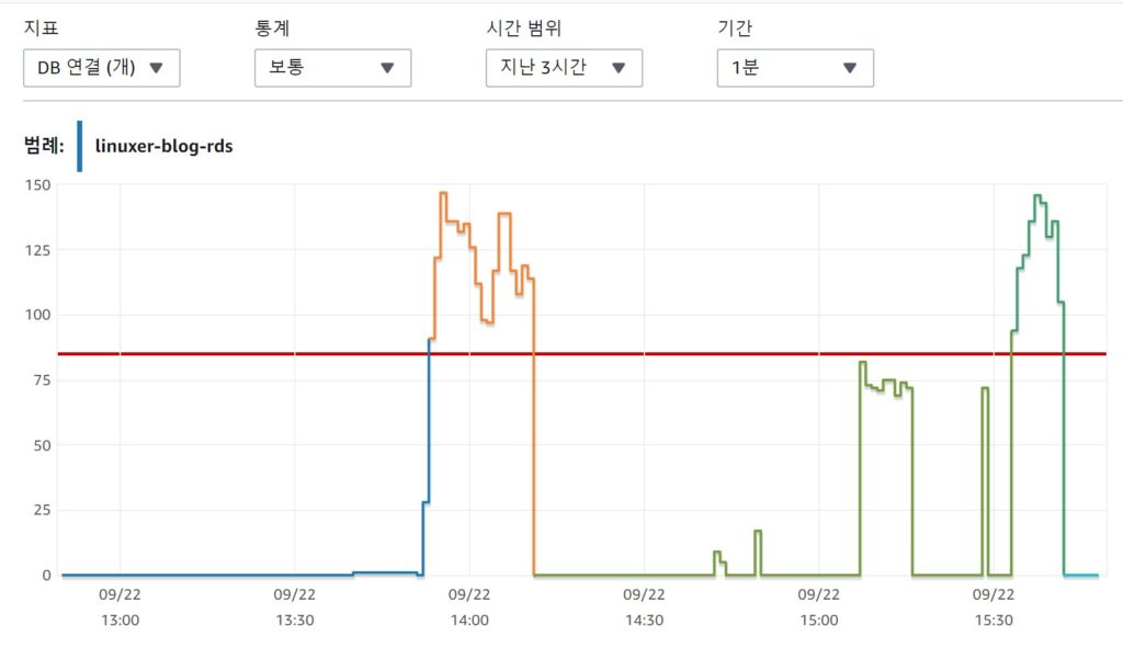 galera 테스트를 진행하면서 블로그의 max connection을 테스트 할수 있었다. 한계는 명확했다. 50…! 50…!!!!!!!!!! 50!!!!!!!!!!!!!!!! t2.micro 사이즈 의 rds 의 max_connections는 134 인데 50까지 밖에 안된다는건 역시 web의 문제일 확률이 크다. php-fpm에서 문제를 확인할수 있었는데 바로 알게된 이유는 apache의 제한은 그보다 크게 설정되어있기 때문이다. $cat /etc/php-fpm.d/www.conf | grep pm.max_children pm.max_children = 50 => 150 $systemctl restart php-fpm ```bash php-fpm 에서 사용할수 있는 자식프로세스 개수를 150개로 변경하였다. 이만하면 충분히 web 인스턴스를 죽일수 있을거라 생각된다. 동접자만 확인하면 되는데 쓸데없이 흥분해서 30000번의 테스트를 보냈다.  로드벨런서 요청 갯수다. 그리고 인스턴스 안에서 로그로 리퀘스트 횟수를 확인해보니 약 9000개 정도.. 어? 나쁘지 않은데? 싶다. 솔직히 내블로그가 동시접속자 1000명으로 몇번이나 견딜까 싶기도 하고... 하지만 여기서 그칠순 없다. 동접자를 더 늘려보자! fpm 설정이 무리한 설정이 아니었을까? 사실 20개만 해도 cpu는 100%가까이 근접해 버리는터라 일단 메모리 리미트에 맞춰서 pm.max_spare_servers 설정을 수정하는것이 관건이라 본다. 간당간당하게 버티면서도 인스턴스는 죽지않는. 이과정은 사이트의 다운과 리스타트가 동반되는 아주 귀찮은 과정이다. 그래도 일단 근성을 보여서 테스트를 진행했다. jmater를 이용하여 부하를 주고 인스턴스가 죽지 않을 만큼 php-fpm 에서 적당히 설정을 조절했다. 이경우 최대 부하시점에서 메모리가 아슬아슬하게 남아있을 경우를 찾아서 최적의 값을 찾아보았고 php-fpm.d/www.conf 를 수정하였다.  top 명령어 로 RES 부분을 보면 하나의 프로세스가 사용하는 메모리 양을 알수있다. 스크린샷에는 52M 정도이므로 프리티어는 1G의 메모리 까지 사용 가능하다. OS 까지 생각하면 대략 750M 정도 사용가능하다 생각하면 되는데 이기준으로 pm.max_spare_servers 를 15로 정했다. 다시 부하를 주었다.  예상 처럼 남은 메모리가 50M 정도밖에 남지않고 잘돌아간다. 물론 이상황에 CPU는 100%다. 이실험을 시작한 이유는 rds에 최대 부하를 주는것이 목적이므로 pm.max_children 를 150 까지 늘렸다. 그리고 테스트를 하였다. /etc/php-fpm.d/www.conf pm.max_children = 150 pm.start_servers = 5 pm.min_spare_servers = 5 pm.max_spare_servers = 15 fpm 을 재시작하여 적용후에 rds의 모니터링을 확인했다.   ec2 도 죽지않고 rds도 죽지 않았다. 아니 rds 는 max 커넥션에 걸리는데 cpu나 메모리는 13%....아마 내블로그에서 끌어낼수 있는 한계가 13%인거겠지...또르륵 그렇다면 이쯤작성하다 오기가 발동했다. 부하테스트를 시작한김에 rds 가 죽을때까지 인스턴스를 늘리기로 했다. Auto Scaling 걸고 트리거 cpu는 60%로 사실 의미없다. 동시 접속 20개만 걸려도 cpu 100%인거.. 그렇지만 rds 를 죽이기로 했으므로 부하를 걸었다. Auto Scaling 은 차근차든 인스턴스가 생성됬고 총5개까지 생성되었다. 사실 동접자 초당 120명 이면 인스턴스 모두 CPU가 100%다.... 무조건 부하를 주는건 잘못된 테스트 같아서 방법을 수정하였다. 1초당120번 접속 무한반복으로. 죽이기로 했으니 원래 t2.micro 사이즈의 max_connections 은 {DBInstanceClassMemory/12582880} 134다 이걸 10000으로 수정하였다.  rds의 파라미터그룹은 디폴트 파라미터그룹을 수정할수 없다. 따로 생성하여 수정해야 한다.  Auto Scaling 으로 추가된 인스턴스다.  내블로그로 rds를 죽이는건 실패했다......아마 인스턴스 사이즈를 늘려서 메모리와 cpu를 더많이 사용한다면 죽일수 있었을거라 생각한다. 다음기회엔 꼭죽이리라.. 블로그를 더 많은 게시물과 자료로 꽉꽉체워서 죽여야겠다. 일단.........결국 가쉽성의 글이되어 버렸다. 결론을 내지못해 아쉽지만 fpm 최적화가 누군가에겐 도움이 될거라 생각한다. 좋은하루 되시라!